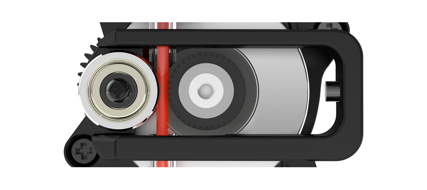 Most extruders on the market utilize opaque frames and dual gears, hiding the filament feed path from view. Without visibility into the extrusion process, users have limited ability to monitor for early signs of faults. The Artemis addresses this through transparent cover design. with a strong and clear polycarbonate cover, the Artemis offers full exposure of the filament engagement and movement dynamics with the single precision-cut gear. Users can now clearly see the filament entering and exiting while under gear forces. Any accumulation of debris which could prematurely clog extruders in the narrow tooth can be easily found and cleaned. This allows potential issues to be identified and addressed before disrupting prints. With full filament flow visibility, the Artemis empowers users with real-time process observability for preventative maintenance and maximum uptime.