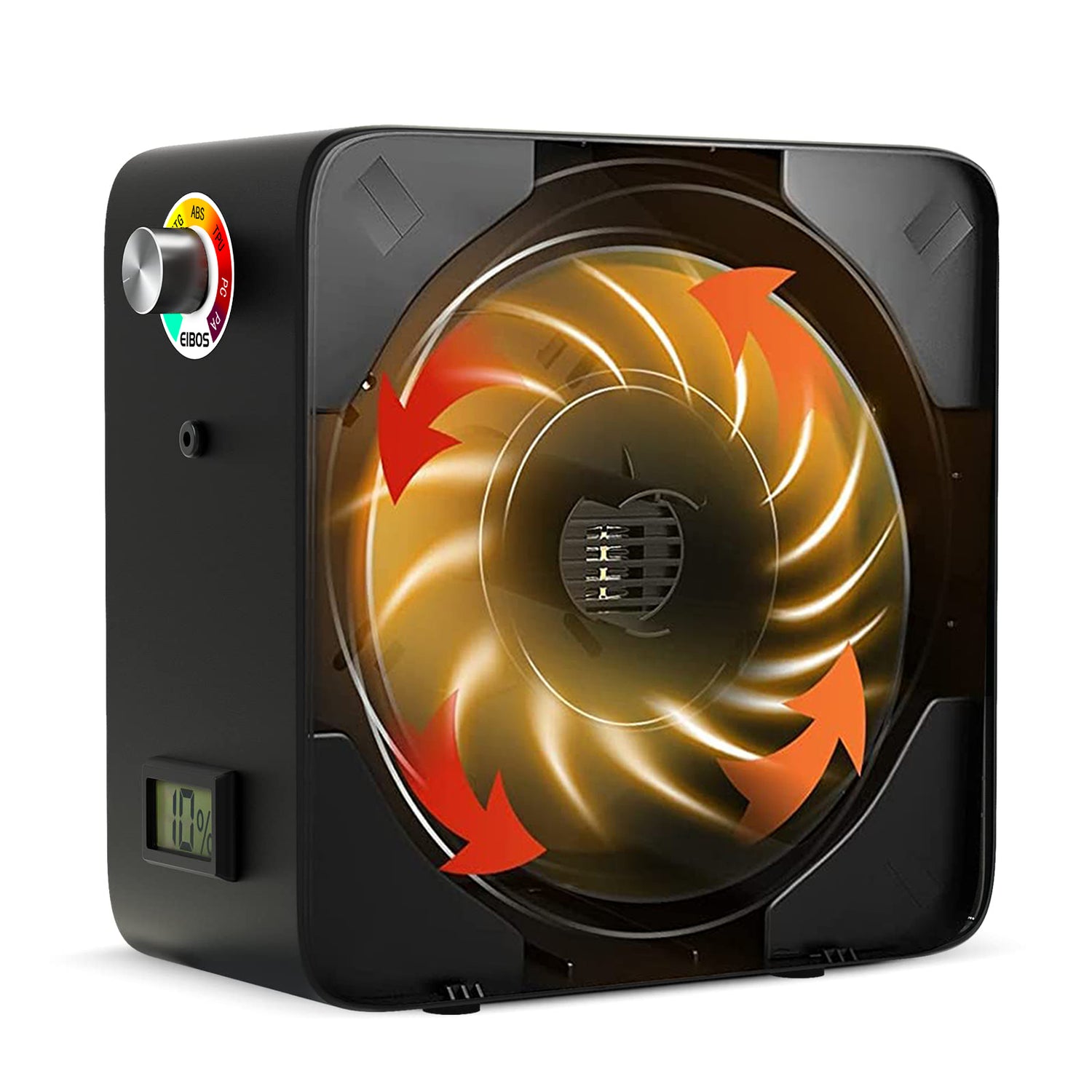 Compared with ordinary 48W PI heating pads, our products use advanced 45W PTC heaters, which have higher durability and energy efficiency, and are more environmentally friendly. This design not only ensures that the filament dries more evenly during the heating process, but also effectively reduces energy consumption, providing a more sustainable choice. In addition, the built-in fan can efficiently circulate the hot air in the drying box to ensure even heat distribution, thereby further improving the moisture removal effect of the drying system. This comprehensive design keeps the material in the best condition during storage, helps to improve printing quality and stability, and meets users' dual needs for efficiency and environmental protection.