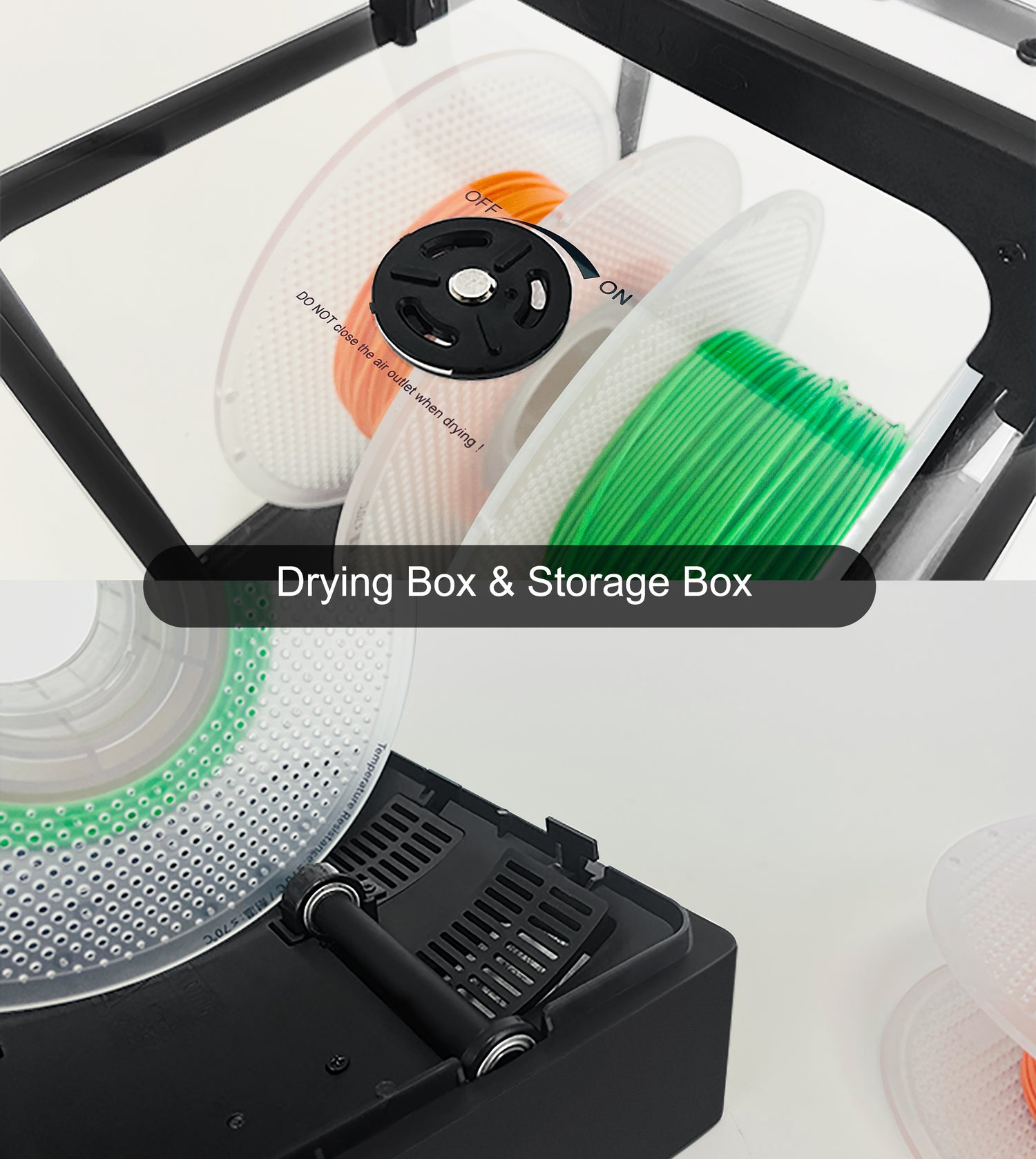 Furthermore, POLYPHEMUS provides a dedicated compartment where you can place desiccants. The desiccants absorb moisture from the air, further ensuring a dry environment for the filament. You can choose suitable desiccants and replace them in a timely manner based on their lifespan.