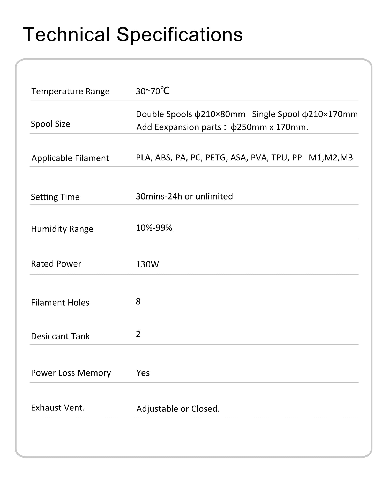 The combination of these features enhances the operational flexibility and filament protection capabilities of POLYPHEMUS, enabling you to achieve optimal drying results.